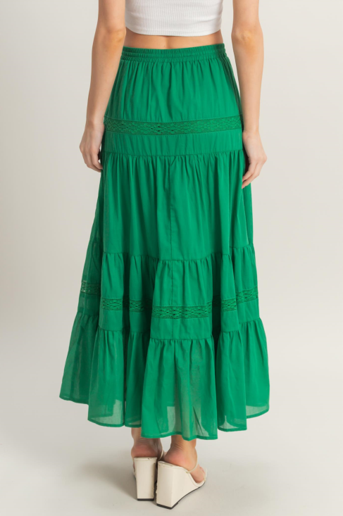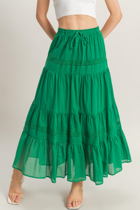 Twirl into spring with this effortless green midi skirt! Perfect for those days when you want to feel put-together without trying too hard, this versatile piece transitions seamlessly from brunch to dinner. The flowing midi length flatters every silhouette while the rich green hue pairs beautifully with everything in your closet. Dress it up with heels and a blazer or keep it casual with sneakers and a tee. A wardrobe essential that's anything but boring.